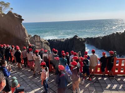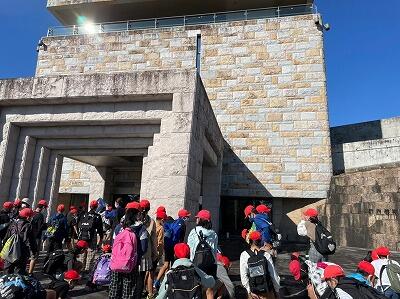 10月27日(木)、令和3年度の6年生修学旅行がスタートしました。天気も最高。76名の児童全員が参加することができました。