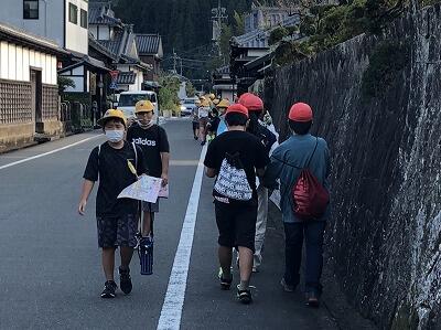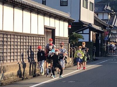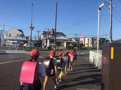 【登校中もマスクでおしゃべりは控えて一列で歩きます】