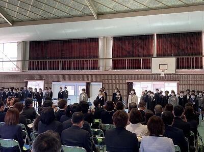 本年度は、例年とは違って、卒業生と保護者が向かい合う対面式の卒業式でした。身近にお子様を見ることができ、よかったのではないでしょうか。