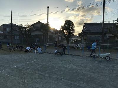 側溝の掃除をはじめ、草取りなど、暑い中、ご苦労様でした。保護者の皆様に整備していただいた運動場で、子どもたちは体育発表会に向けての練習に励み、10月17日(日)の本番を迎えることができます。