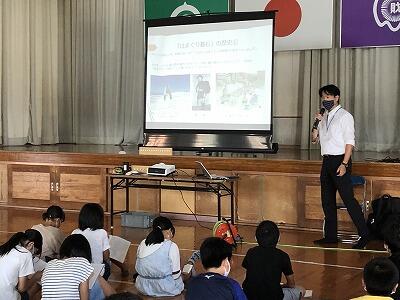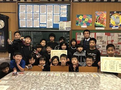 6年生は、キャリア教育・ふるさと学習として地域の大人、職業人に学んでいます。今回は平岩のミツイシ株式会社 黒木宏二さんに学びました。黒木さんには以前からお世話になっており、今回は、日向が世界に誇る伝統産業の碁石の歴史や製造方法とともに、日向市の大人としての思い、これからの日向市への思いを子供達に話してくださいました。子供達は黒木さんの仕事への誇りと郷土愛を感じるとともに、修学旅行での日向市PR作戦に向けて意欲を高めていました。ありがとうございました。
