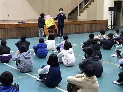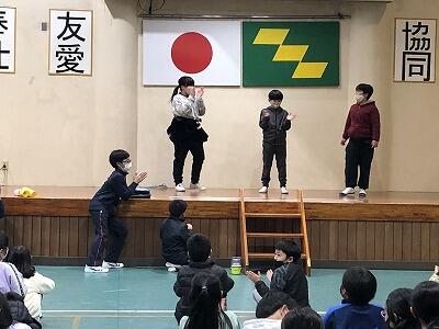 3月4日(金)に6年生を送るお別れ集会がありました。今回は送り出す5年生が主になって計画・準備・当日の運営までやってくれました。写真は全校放送でクイズを出しているところです。財小ネタや各学年の学習ネタ等工夫されていてとても盛り上がりました。その後、各学年から6年生への動画メッセージを流し、最後は6年生からの応援メッセージももらいました。手作りの感動的な集会でした。5年生よく頑張りました。
