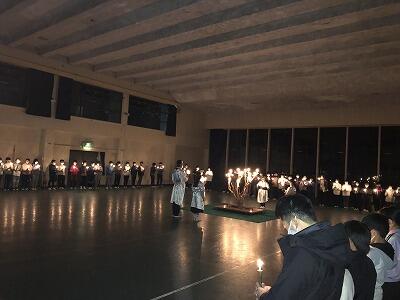 早めにお風呂をすませ、ゆっくりした後、夜は楽しいキャンドルの集いでした。得意のダンスや出し物、じゃんけん大会で大いに盛り上がりました。子供達自身が考え、運営することができたのは、たいしたものです。最後はキャンドルを見つめ、静かに一日を振り返りました。