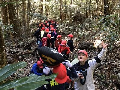 本日、5年生がむかばき宿泊学習に出発しました。黒木優太さんの力強い宣言のもと、みんなわくわくしながら出発しました。初日は早速、滝までのトレッキングです。登った子達は全員無事に、スムーズに登り切ったようです。さあ、2日間の大冒険がんばりましょう!