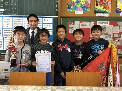 財光寺小・財光寺南小の児童が活動している少年野球チーム「日向スラッガーズ」が、11月21日(日)に西都市で行われた「第1回デサント旗争奪少年軟式野球大会」において、見事に4位入賞したとの報告がありました。県内の強豪チームが集まっての大会らしく、準決勝では優勝した宮崎のチームに惜敗したものの、チームワークで最後まであきらめない試合ができたとのことです。シーズンオフも近づいています。6年生は残された時間を大切にしながらがんばってほしいと思います。