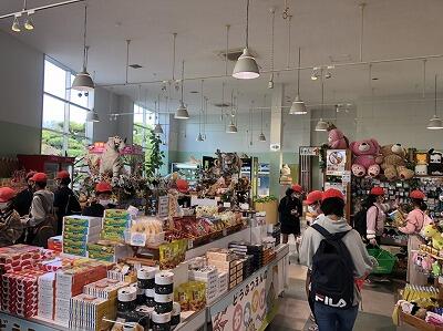 平日の自然動物園はお客も少なく、乗り物乗り放題みたいです。みんな楽しんでいます。お土産コーナーも・・・。