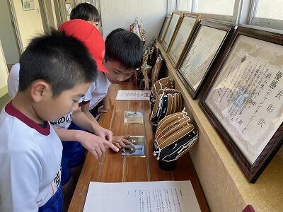 ニュースでも話題になっているドジャースの大谷翔平選手からのグローブ、子どもたちも「いつ届くんだろう・・・」と首を長くして待っていましたが、ついに財光寺小学校にも届きました。