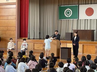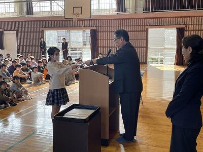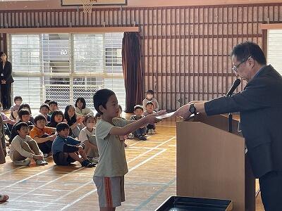 校長先生から各学年の代表に修了証が渡され、めでたく全員が今の学年を修了することができました。