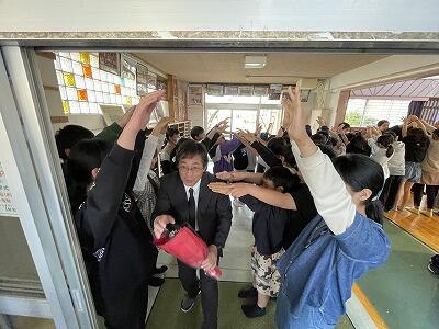 最後に校歌を全員で歌い、先生たちを子どもたちのアーチで送り出しました。