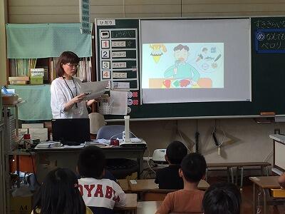 10月4日(金)、富高小から栄養教諭の先生をお招きして1年生で食育の授業を行いました。