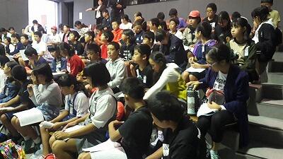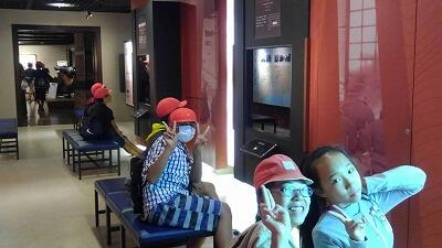 シアターを全員で見た後、グループに分かれて館内を回っています。