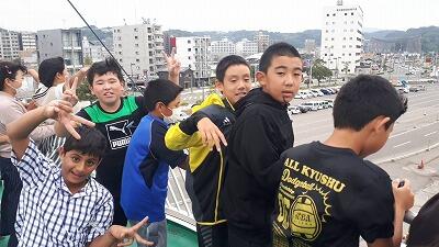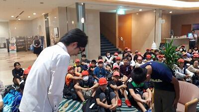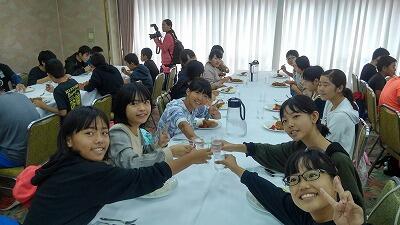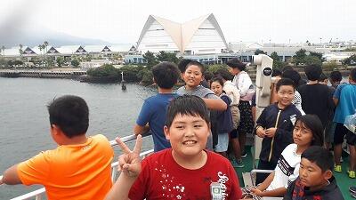 17:30、宿泊先である「レインボー桜島」に到着です。みんな元気です。ホテルの方にごあいさつをして、子どもたちもほっと一息というところでしょうか。でも、これからが修学旅行ならではの時間かもしれません。