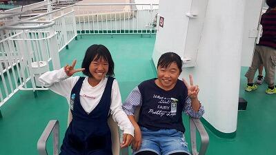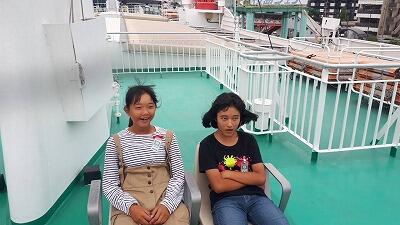 桜島の展望台と宿泊先のホテルに向かうために、フェリーに乗船しました。