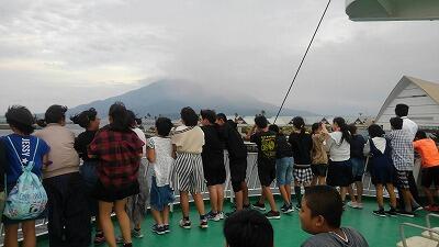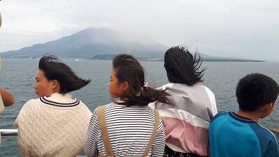 桜島はここ3日間、火山灰が降り、地面も屋根も灰だらけだそうですが、子どもたちの旅行に影響はなさそうです。これから、食事そして入浴です。