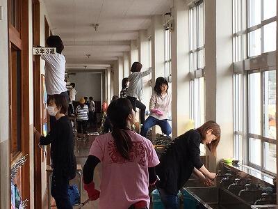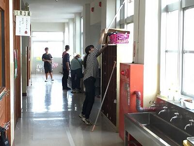 日曜日の朝早くにもかかわらず、たくさんの保護者の方が集まってくださいました。今回は校舎内の高いところや窓ガラスを掃除していただきました。1時間足らずで、学校中がすっきりきれいになりました。本日ご協力いただいた保護者の皆様、計画・準備をしてくださったPTA環境整備部の皆様、ありがとうございました。