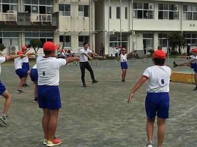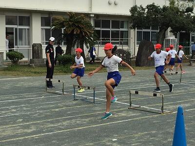 中でも6年生は、財光寺中学校の保健体育科の先生方3名をお招きして、市陸上大会の各種目について、走り方、跳び方の指導していただきました。中学校の先生方の専門的な指導で、子どもたちは自分なりにコツをつかんだようで、熱心に練習に取り組んでいました。