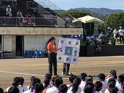 10月31日(木)の全校朝会では、まず、11月8日に開催されるひまわりフェスティバルに向けて、4年生がプレ発表を行いました。迫力のある合奏、きれいな歌声が響く合唱とこれまでの練習の成果を見せてくれました。これからの残り1週間でますます磨きをかけてくれることと思います。本番が楽しみです。