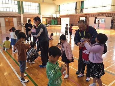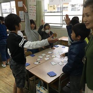 11月21日(木)、1年生は地域の方をお招きして、昔の遊びを教えてもらいました。「こま回し」「竹とんぼ」「おじゃみ」「あやとり」の遊び方の”コツ”について名人さんから実演を交えながらの指導を受け、自分たちもチャレンジしました。名人さんの技に「おおー」という歓声が何度も上がっていました。1年生は楽しさとできた時の喜びに満ちあふれた表情で、にこにこ顔で過ごした2時間でした。