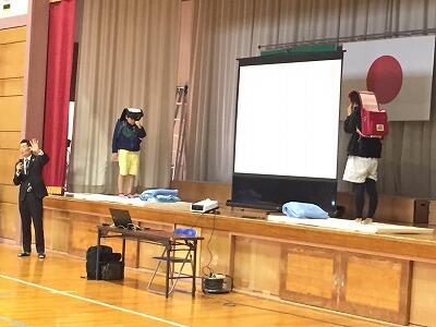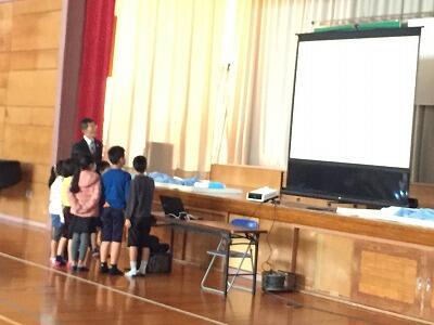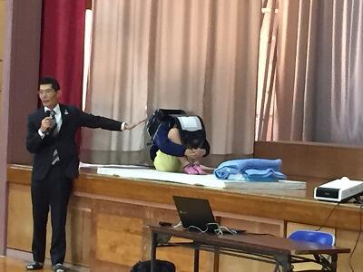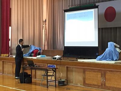 12月2日(月)3校時、宮城県仙台市の防災減災アドバイザー:吉田亮一先生にお越しいただいて防災減災教室が行われました。地震が起きたときに備えて、普段の生活からどんなことが大切なのか、もし地震が起こったらどのように避難すればよいのかということについて、クイズ形式や実際の体験等を交えながら、とてもわかりやすくお話いただきました。どの学年の児童も、最後まで集中して聞いていました。