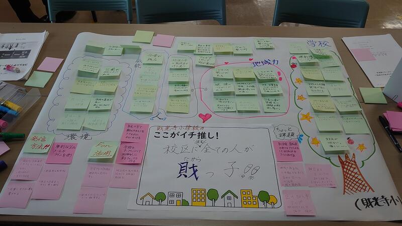 5月23日14時より大王谷コミュニティセンターで、各学校の学校運営協議会委員の皆さんが集まり、本市のコミュニティスクールの考え方を再確認するとともに、「財光寺小のいいところ」考え、アピールしてきました。学校ごとのグループの中でも一番付箋が貼られ、委員の方の思いを改めて感じることができました。