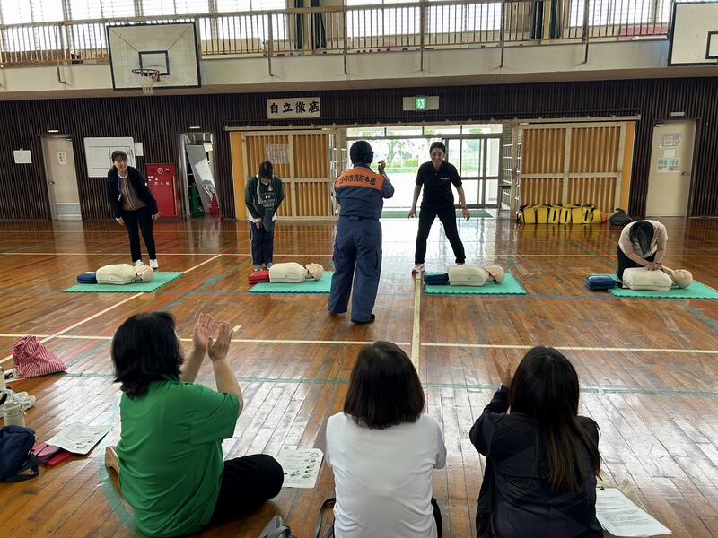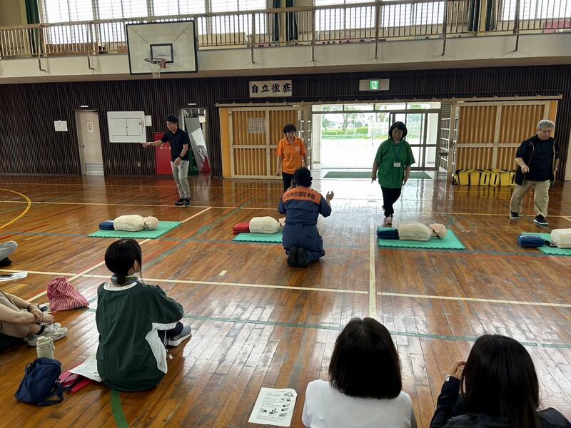 財光寺中学校の先生方と合同の「救急救命講習会」に参加しました。水泳学習が始まる前に、再度確認しておく必要があるので、心肺蘇生法とともにAEDの使い方を確認しました。いのちを守る、いのちを救う訓練として全職員で確認したところです。