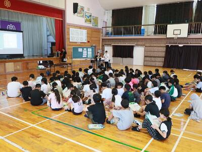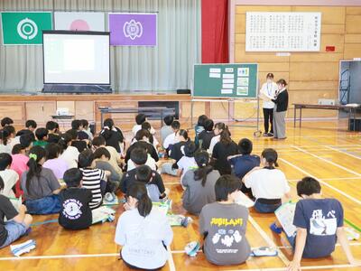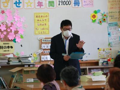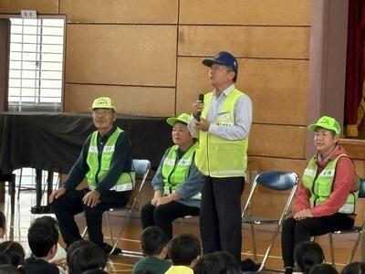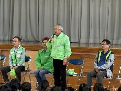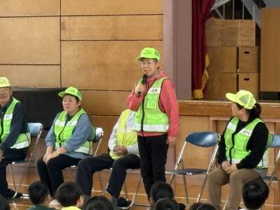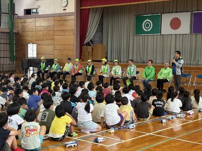 財っ子の登下校を見守ってくださる安全監視委員の方々をお迎えして集会を開きました。日頃の感謝を伝えるとともに、地域の方々とつながることで、登下校のみならず日常生活における絆を深める機会になったと思います。これからもよろしくお願いいたします。