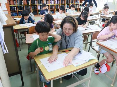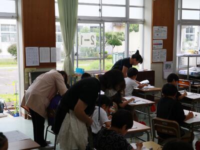 令和7年度の「花まるサポーター」の活動が始まりました。朝、8時過ぎに11名のサポーターの方が勢ぞろいしました。子どもたちとのふれあいをとても楽しみにしていることが、お話の中で伺えました。今年、初めての方もおられ、少し緊張されていたようでしたが、教室に入ると子どもたちの寄り添ってくださる姿は、とても安心できました。これからもよろしくお願いします。