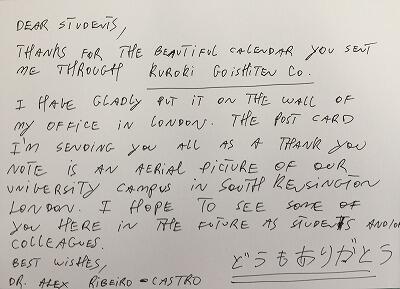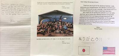 本日は、日向市教育委員会経由で日向市が交流を続けているハワイのモミラニ小学校から、「知って”ヒュー”カレンダー」のお礼のお手紙、プレゼントが届きました。日向とハワイの交流の架け橋として、本校卒業生が作った、「知って”ヒュー”カレンダー」が貢献できたと思うと本当にうれしい限りです。