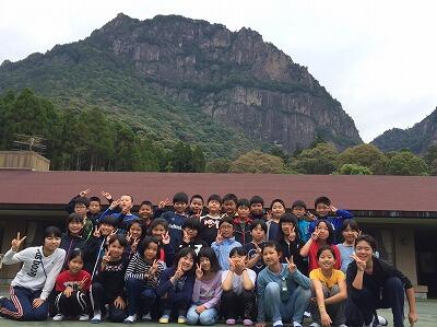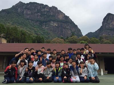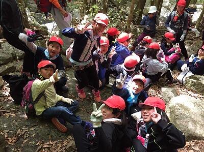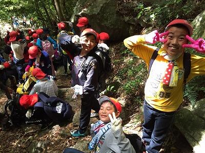 学校で出発式を済ませ、バスで移動。到着後、早速登山に挑戦です。