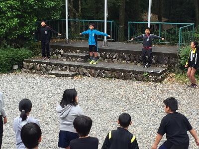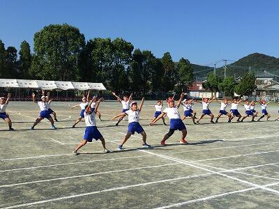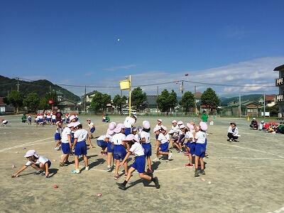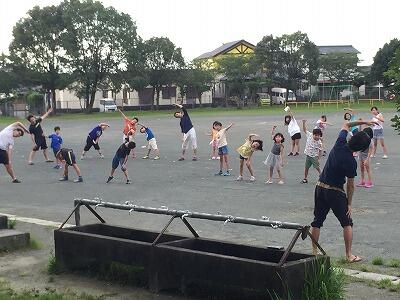 夏休み2日目、雨が上がったので、運動場では比良地区育成会のラジオ体操が始まりました。