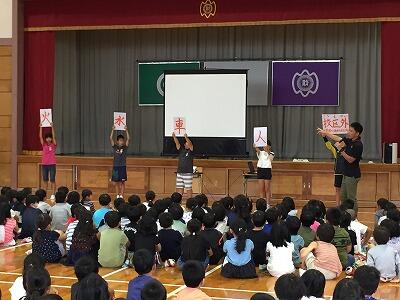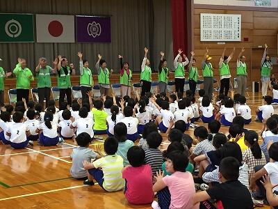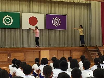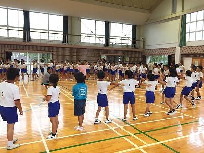 という両者の思い・願いをもとに、コミュニティ・スクールの取組として、地域の夏祭りをとおして児童と地域をつなぐをコンセプトに、本日、1学期最終日、地域の方に来ていただきて『ばんば踊り練習会』を行いました。短い時間でしたので、それほど多くの練習はできませんでしたが、子どもたちには地域の夏祭りに参加して、ばんば踊りを楽しんでほしいと思います。