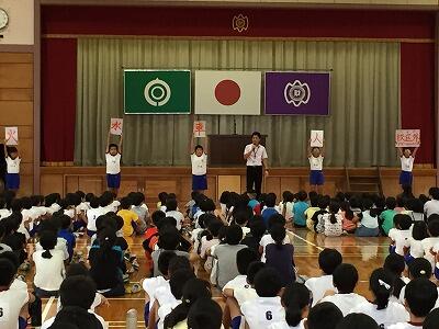 終業式では、まずはじめに校長先生が地域の方からのメッセージを紹介してくださいました。財っ子たちのやさしい行いをよく見て下さっているものが多くありました。その後、2年生と4年生の代表児童が1学期がんばったことを上手に発表しました。