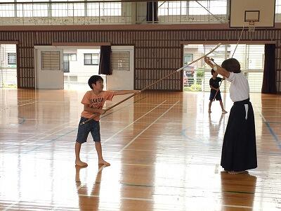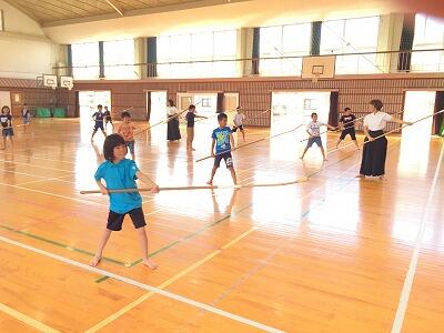先生方の丁寧なご指導とあたたかい声かけに、参加した子どもたちはとても楽しそうに取り組んでいました。時間が経つにつれて、だんだんと"様になってくる子どもたち”、さすがでした。数年後に行われる宮崎国体でのなぎなた競技の代表選手がこの中から生まれるかもと、ひそかな期待をよせているところです。