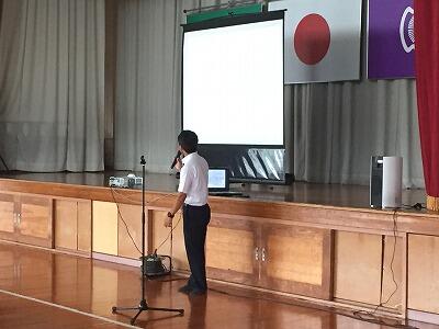 朝の時間は全校朝会を行いました。校長先生からは「戦争、平和について」のお話があり、財光寺地区にある戦争関連の施設の写真を見たり、広島平和記念式典での「誓いの言葉」を聞いたりしながら、子どもたちは、自分たちにもできることについて真剣な表情で考えていました。