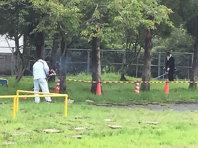 本年度も前日8月31日(土)のうちに各地区環境整備部員さん、育成会長さん、各地区代表の方が機械を使った草刈りや側溝の蓋上げ作業を終わらせてくださいました。