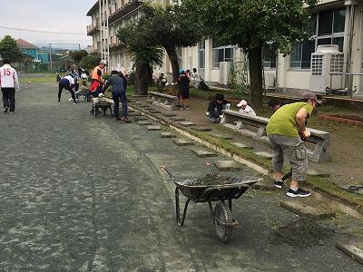 9月1日は除草や草集め作業、側溝にたまった土上げ作業、テントの組み上げなど、大変な作業を時間いっぱいしていただきました。おかげさまで、2学期に向けて、運動会に向けて、すばらしい学習環境が整いました。ご協力いただいた保護者の皆様、ありがとうございました。