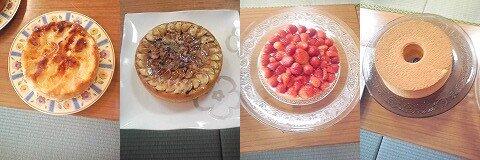 ①アップルキャラメルケーキ ②パリの石畳ケーキ ③フレッシュフルーツタルト ④シフォンケーキ