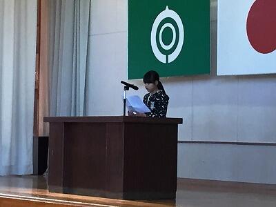 続いて児童代表の6年生が『自分の夢』について作文発表をしてくれました。友達のアドバイスを受け止めて、夢を大切にしている姿勢がすばらしいと感じました。