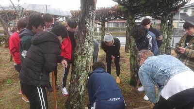 そのことに先立ち、本日成人式を迎える本校平成22年度卒業生が、昨日12日(土)に来校し卒業当時に埋めたタイムカプセルの掘り起こしを行いました。小雨の降る中ではありましたが、卒業生の皆さんと当時の担任の先生方が体育館前に集まり、おぼろげな記憶(!?)を頼りに掘り起こし作業。3つのカプセルのうち、残念ながら1つだけは見つけることができなかったとか・・・!?