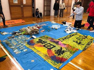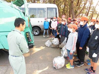 最後は、地域の方々や保護者の皆さんと一緒に記念撮影を行いました。その後、日向市環境政策課の方に、ごみを収集に来てもらいました。「お倉ヶ浜の環境を良くして、はまぐりが再び取れるようにしたい。」という願いのもと、清掃活動をがんばりました。