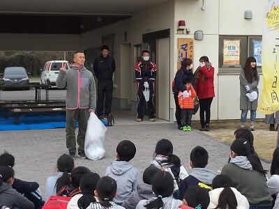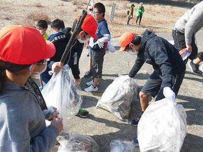 1月24日(火)、6年2組が総合的な学習の時間「はまぐりプロジェクト」で、お倉ヶ浜の清掃活動を行いました。学級の子どもたちに加え、地区の方々や保護者などのありがたいご協力をいただきながらの清掃活動でした。