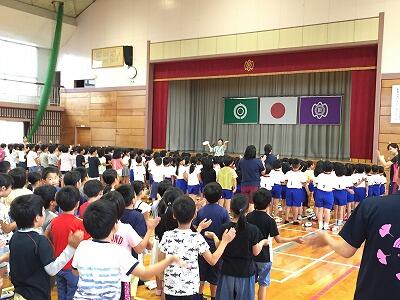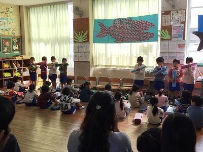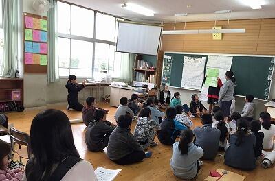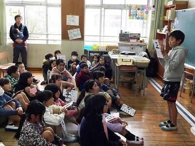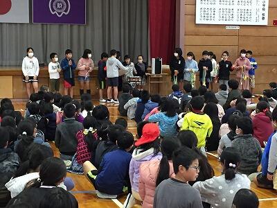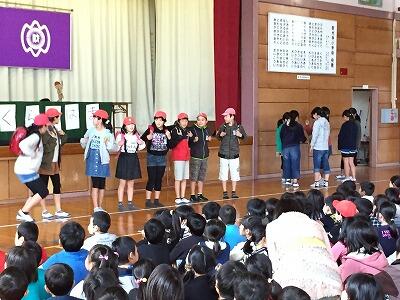 今週は、1組、2組それぞれが”自作劇”で海岸をきれいにすることの大切さを1~5年生に訴えました。どちらも随所にアイデアと工夫が散りばめられた見応えのある劇に仕上がっていました。