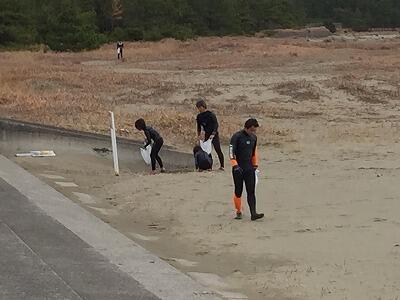 海に入って波乗りを楽しんでいたサーファーの方々、これから海に入ろうとされる方々も、ウェットスーツのまま、しばし砂浜を歩き回ってごみ集めをされるこの活動。本当にすばらしいと感じました。