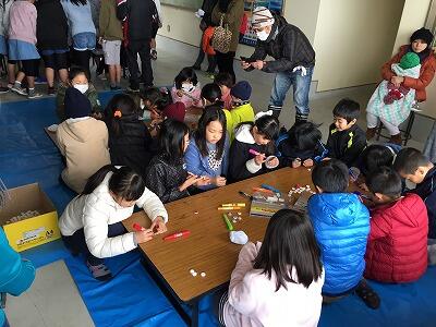 ごみ拾い終了後には、6の1の児童が企画し、ミツイシの黒木社長にご協力いただいた「はまぐり碁石に絵を描こう」のイベントが、ビーチハウス内で楽しい雰囲気の中、行われました。