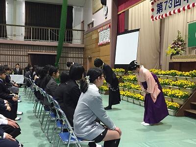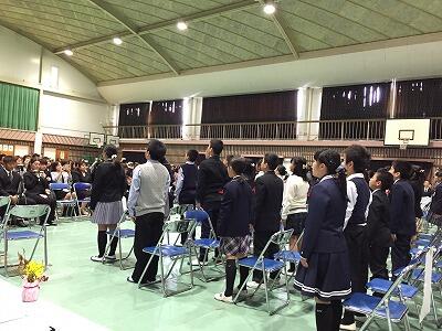 最後の卒業生退場のタイミングで、1・2組の代表がそれぞれの担任の先生への感謝の言葉を述べた時、感極まって涙する卒業生の姿が数多く見られました。