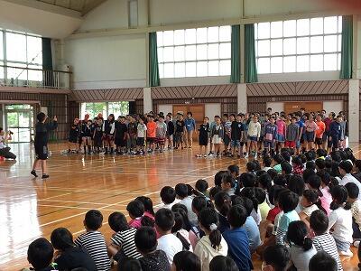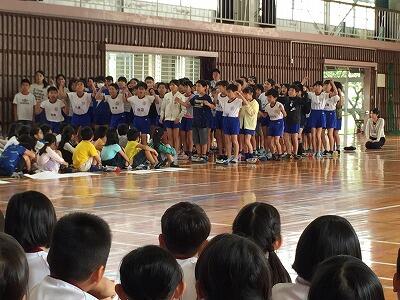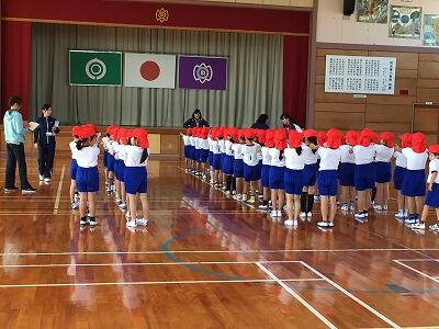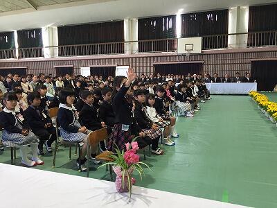 まずは、体育館でお別れ集会を行いました。地区対抗「フラフープくぐり」競争、各学年からの呼びかけなど、全校児童で楽しい時間を過ごすことできました。特に5年生の実行委員の子どもたちの進行、運営の動きがすばらしかったです。6年生は、お礼の気持ちのこもったすばらしいエールを披露してくれました。