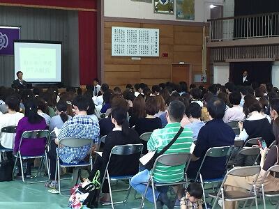 その後開催されたPTA総会、事前に準備していた椅子が足りなくなり追加するほど、これまた多くの方々にご出席いただきました。保護者、教職員合わせて総出席者数221名、本当にありがたいことです。動画とプレゼンテーションによる学校長の経営説明や新会長からのPTAの新たな挑戦のお話、読み聞かせ『どんぐりの会』感謝状贈呈等、限られた時間の中で、会はスムーズに進行していきました。