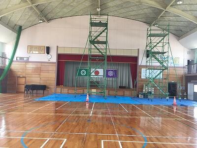 8月3日~8月10日の8:00~17:00、本校体育館では照明をLED照明に交換するための工事が行われます。館内に大きな足場が2脚設置されており、体育館利用団体の皆様にはご迷惑をおかけしますが、ご理解ご協力の程、よろしくお願いいたします。