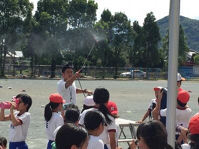 式終了後、各部の隊長の先生方から、夏休みの過ごし方についてのお話がありました。ひさしぶりにDr.ブラックと太郎くんも登場しました。
