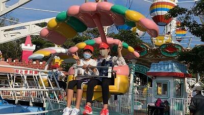 平日の自然動物園はお客も少なく、乗り物乗り放題みたいです。みんな楽しんでいます。お土産コーナーも・・・。